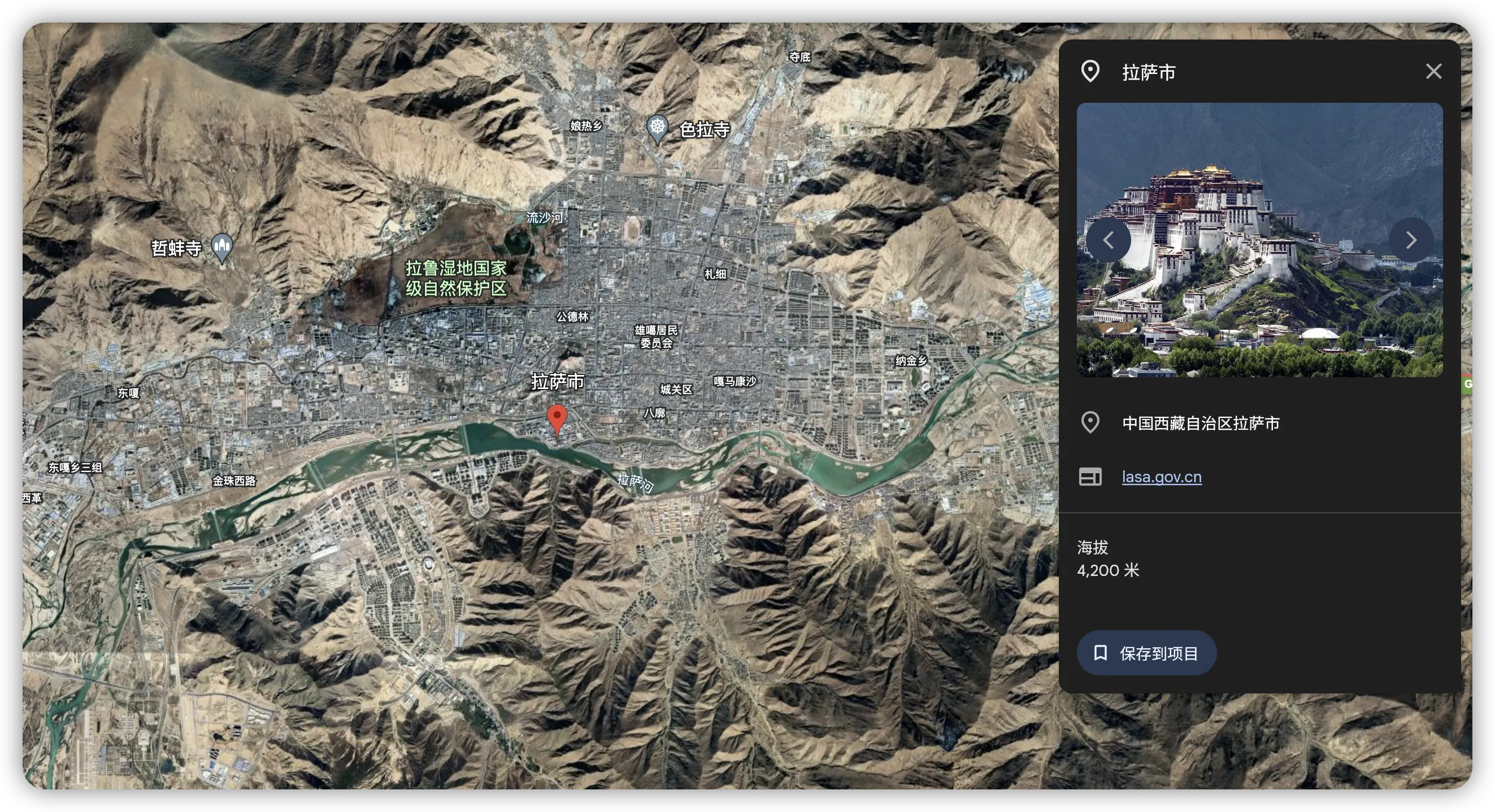 拉萨位于一个四面环山的小盆地中,平均海拔 3663.5 米,是藏传佛教的圣地,西藏全区的政治、经济及文化中心。