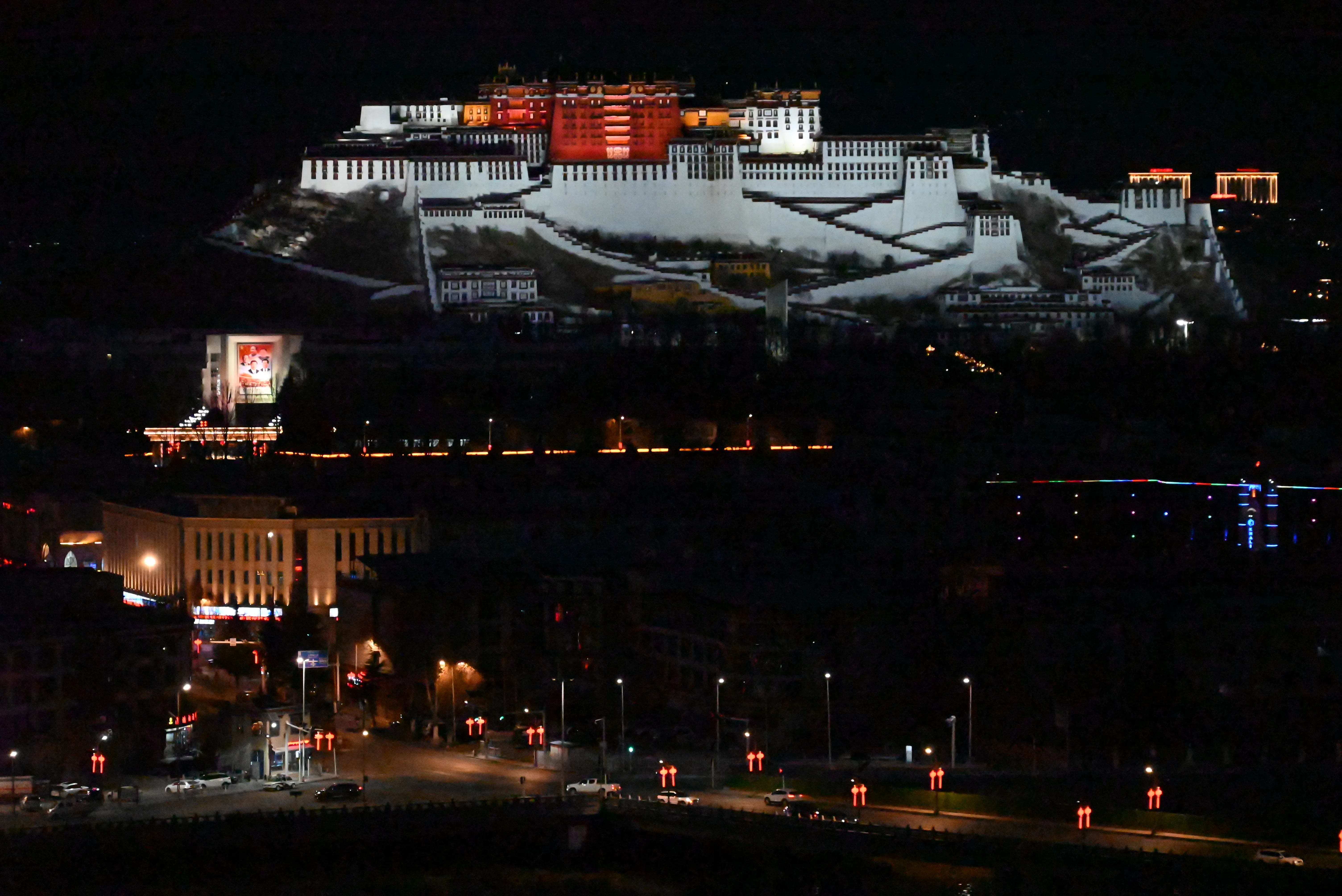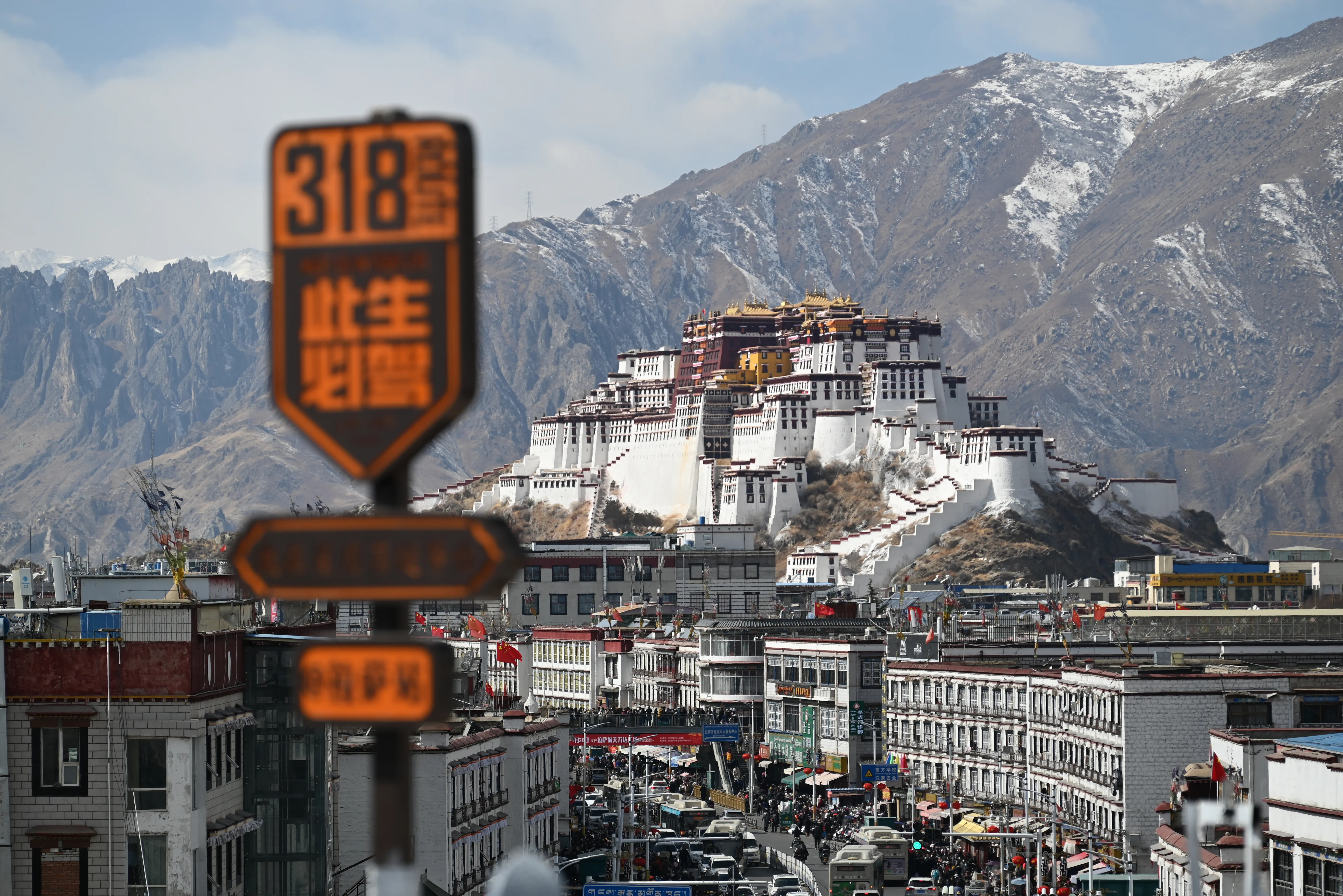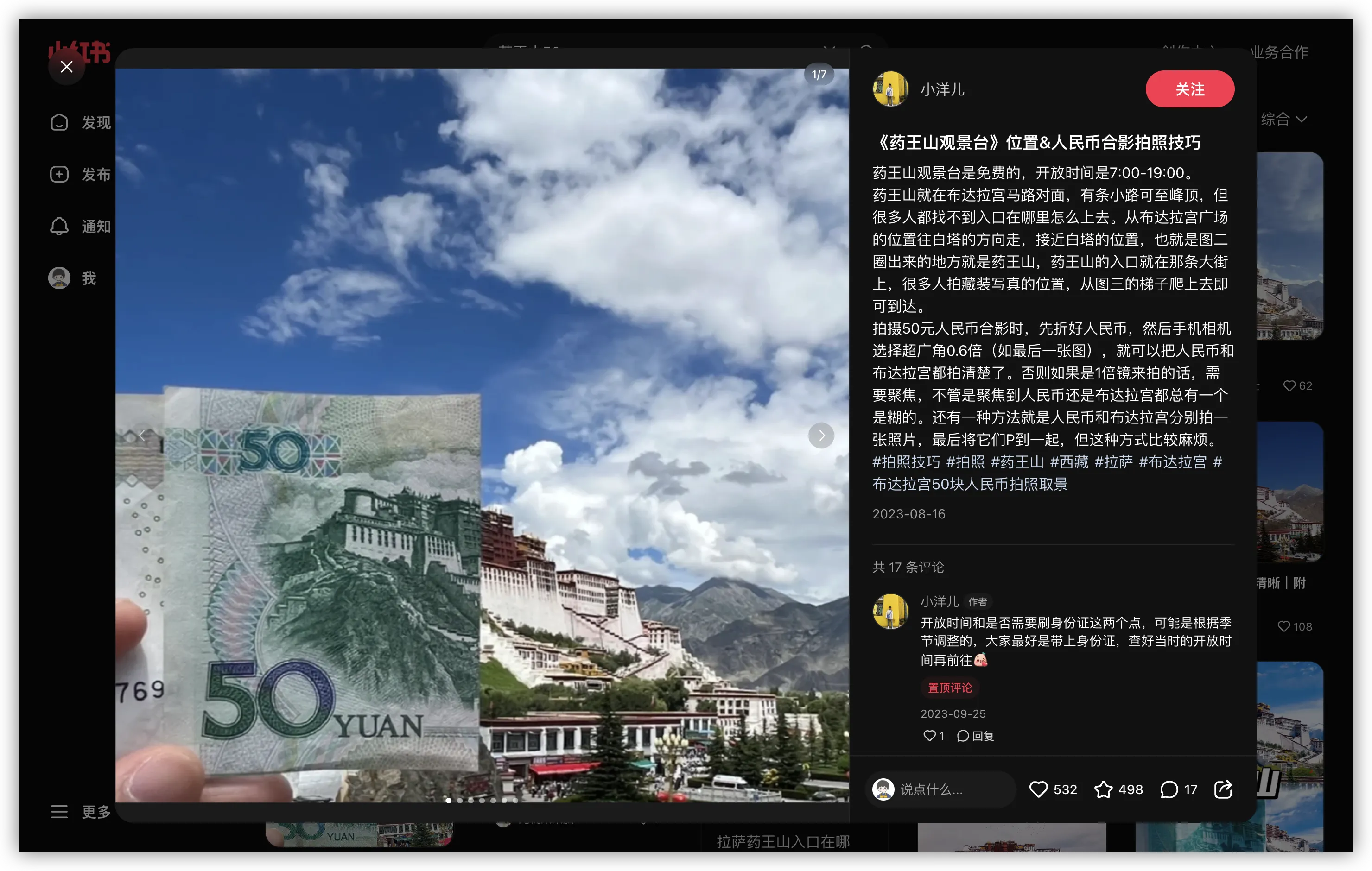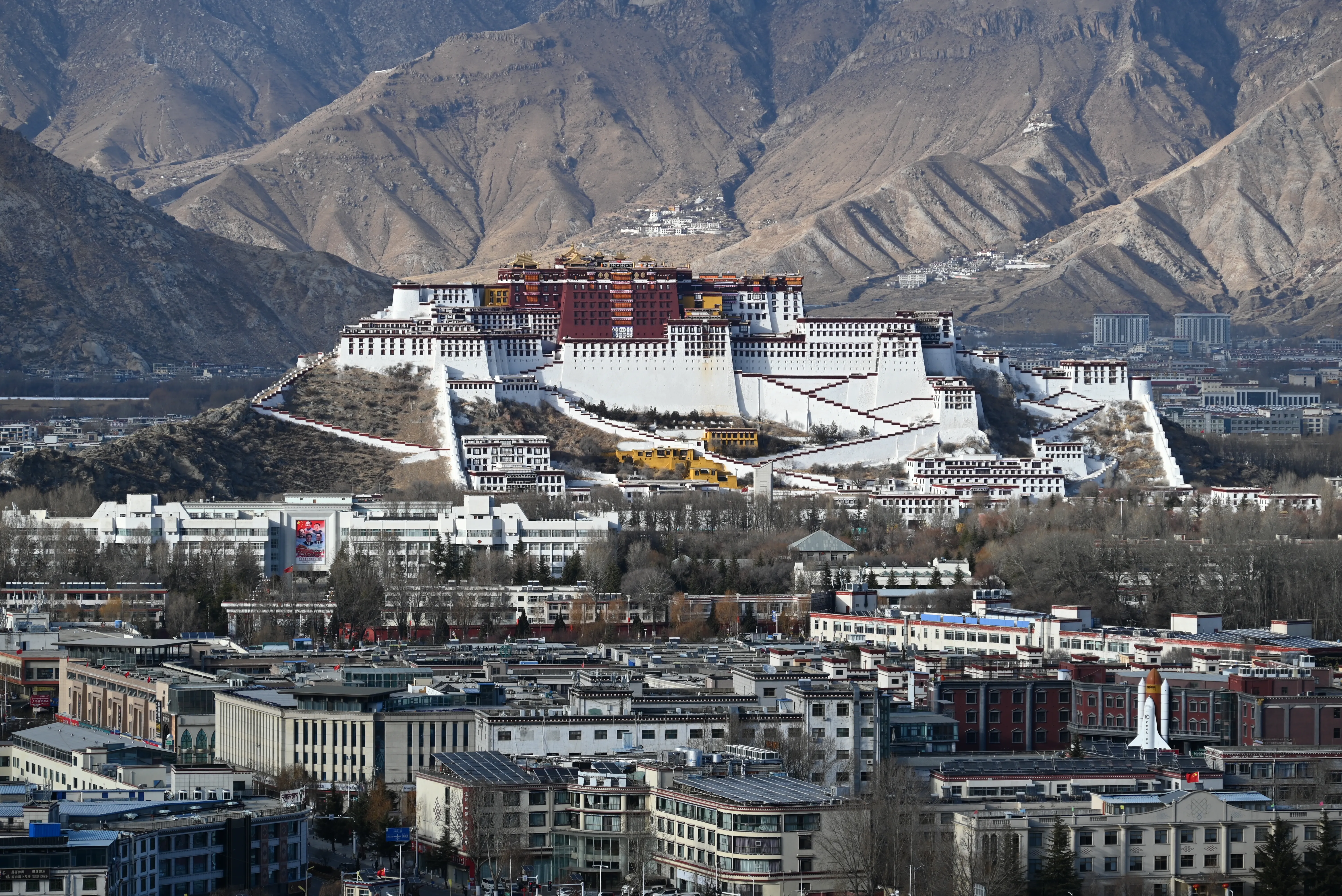 药王山观景台位于布达拉宫西侧,是 50 元人民币的取景地。