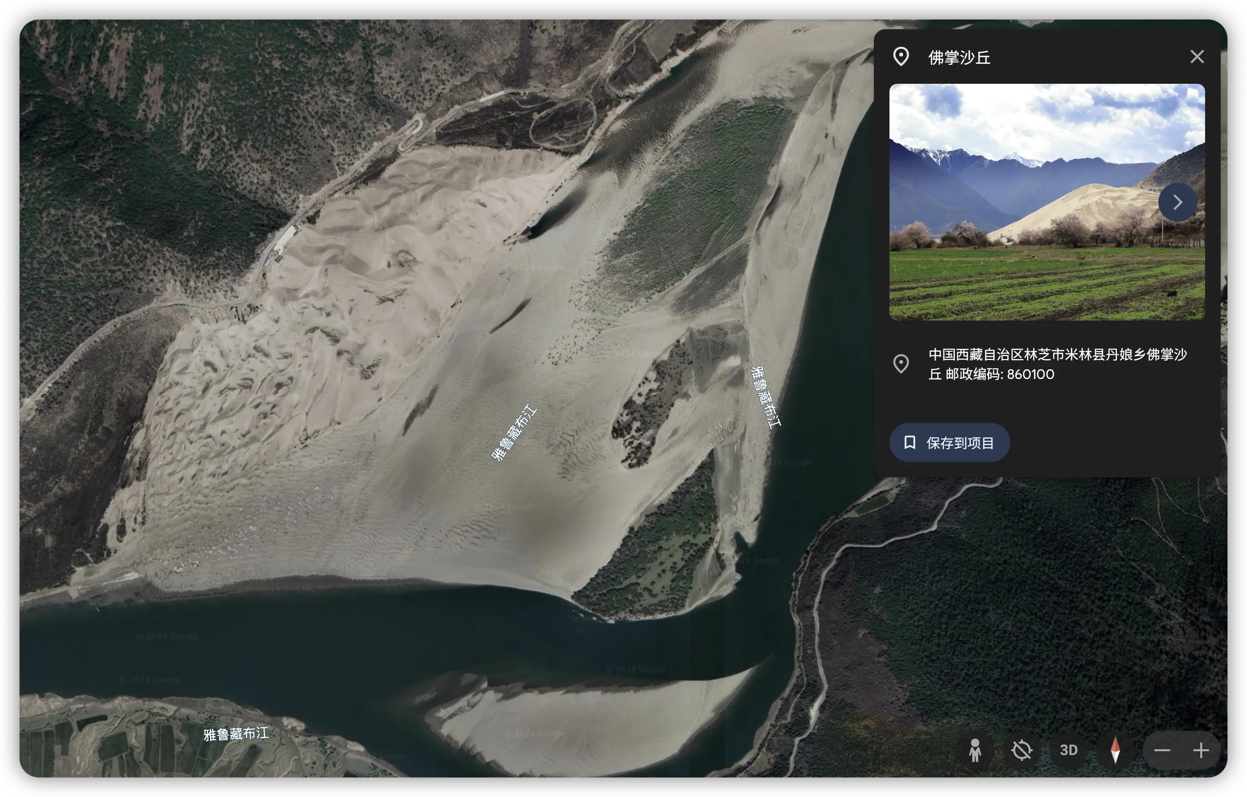佛掌沙丘位于米林县丹娘乡雅鲁藏布江北岸,沙丘之形与其在江面中的倒影酷似一合掌祈祷的佛掌而得名。
