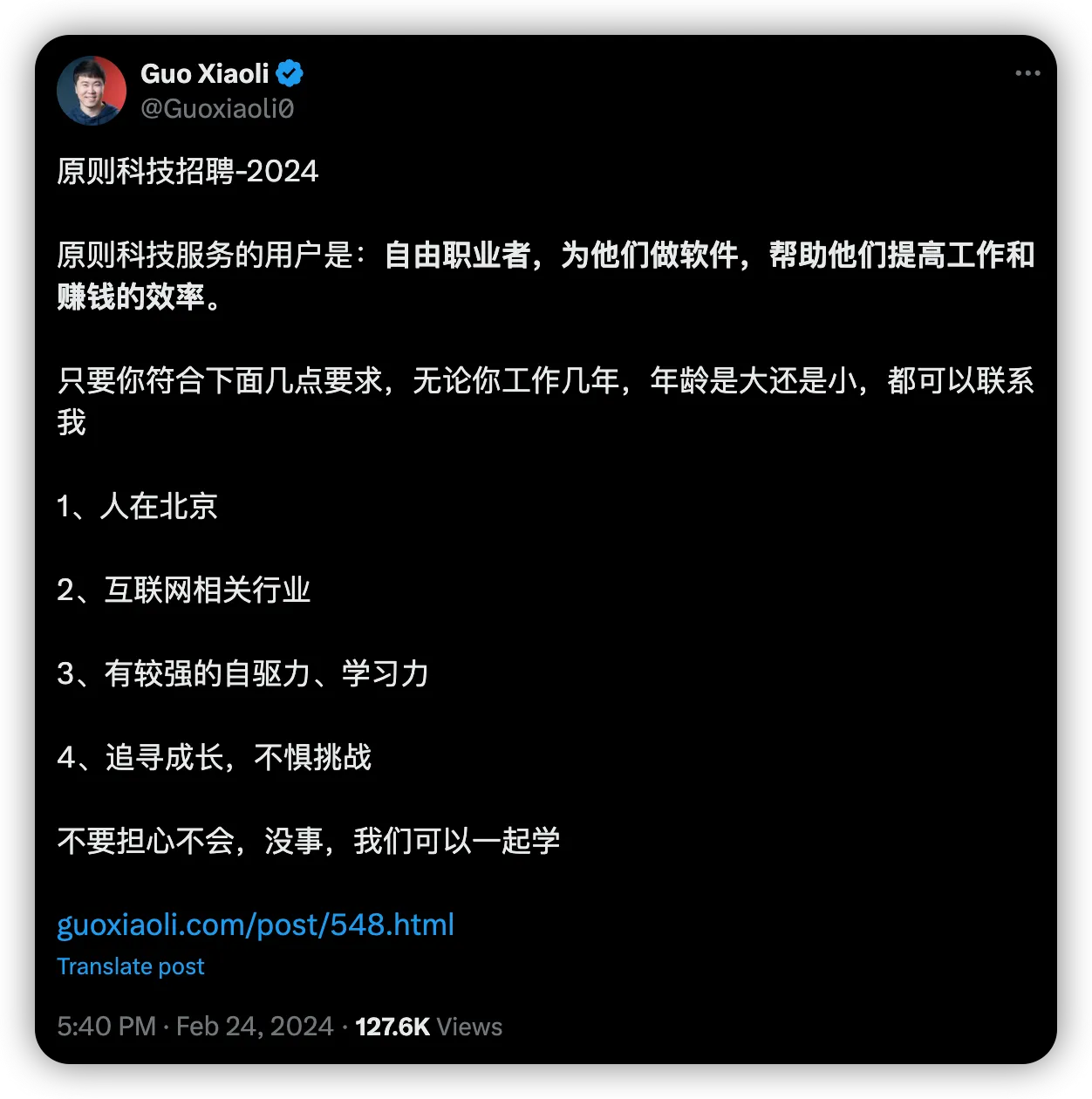 24 年年初,在我 23 岁生日的前一天晚上,我在 X 上刷到了一条招聘信息。